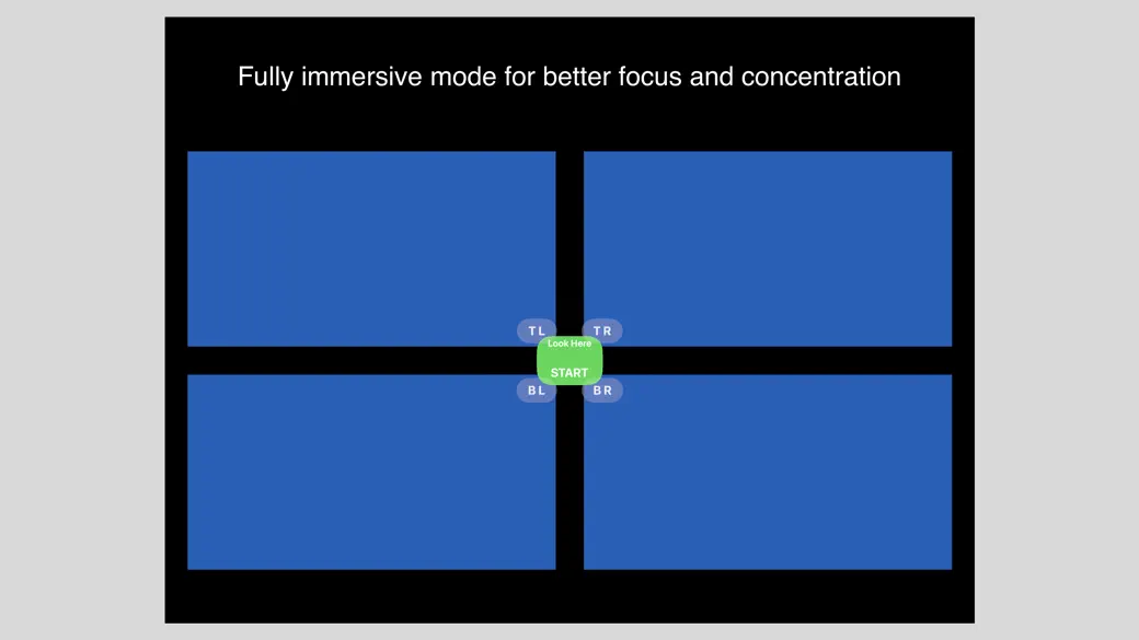 A Visual Fields screening test for your eyes. This app runs in two modes: a shared space window environment, and a full immersive environment where windows from other apps are hidden. It defaults to the immersive space, but you can choose the other mode in the main Settings tab. We recommend that you sit down while running the app in immersive mode. In this mode, the test panel will be anchored approximately 5 feet from the position of your head, and you should move the main window to an accessible location before beginning the test. You may turn the digital crown on the headset to adjust the amount of immersion to a comfortable level. Select either the Short test or Extended test duration to check your peripheral vision. When the test opens, a visual panel will appear in front of you. For best results, you may need to drag or rotate the panel until it fully covers your front and peripheral vision before starting the test. In immersive mode, look at the black edges of the screen to select, then pinch and drag to move the panel around. You can also use the rotate gesture to re-position the panels at a better angle. During the test, look in the green viewer area while you use your peripheral vision to catch the random white dots that appear in each of the four panels (Top Left - TL, Top Right - TR, Bottom Left - BL, and Bottom Right - BR). Click the button corresponding to the panel where you saw the white dot. The timing and location of the dots are intentionally randomized. Do not look right at the dots while performing the test, as it will yield inaccurate results. When the test completes, you may view your results. Snap a screenshot to keep it for your records. Peripheral vision loss can be an insidious process. Visual acuity may gradually deteriorate without our knowledge, but early detection could uncover hidden eye or neurological diseases that can be treated early to prevent further damage. We would like to remind you that it is not a medical grade dignostic test. Always check with your doctor if you have any questions about your vision, and see your opthalmologist for proper medical assessments. As a reward for taking this test in immersive space, you will be presented with a surprise object at the end of the test after tapping the Exit button following Results. You may pinch and drag this object to move it closer to you, and even rotate it for fun using the rotate gesture. The object will disappear when you close the test from the main window. We hope you find this test useful. More to come. Questions or feedback: teambluevinesolutions@gmail.com