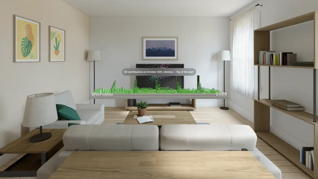 - Yearly Stats: View your entire year's contribution stats through an intricate 3D graph.