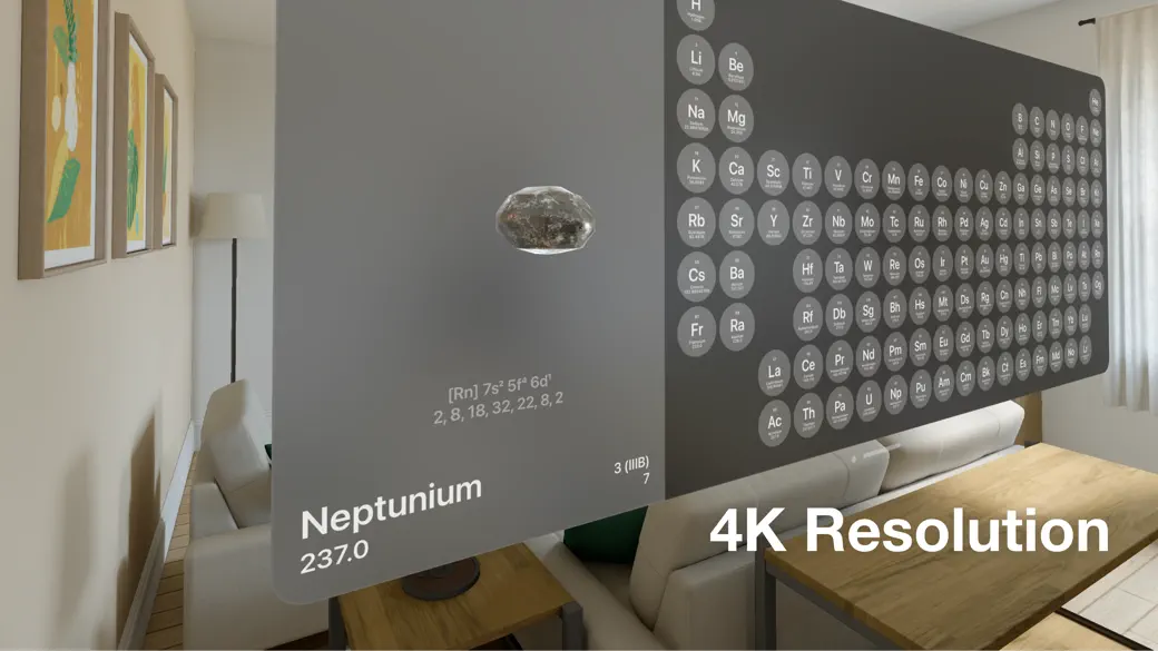 2. **增强现实:** 将周期表放置在您的环境中,观察元素如何直接与周围的世界互动。