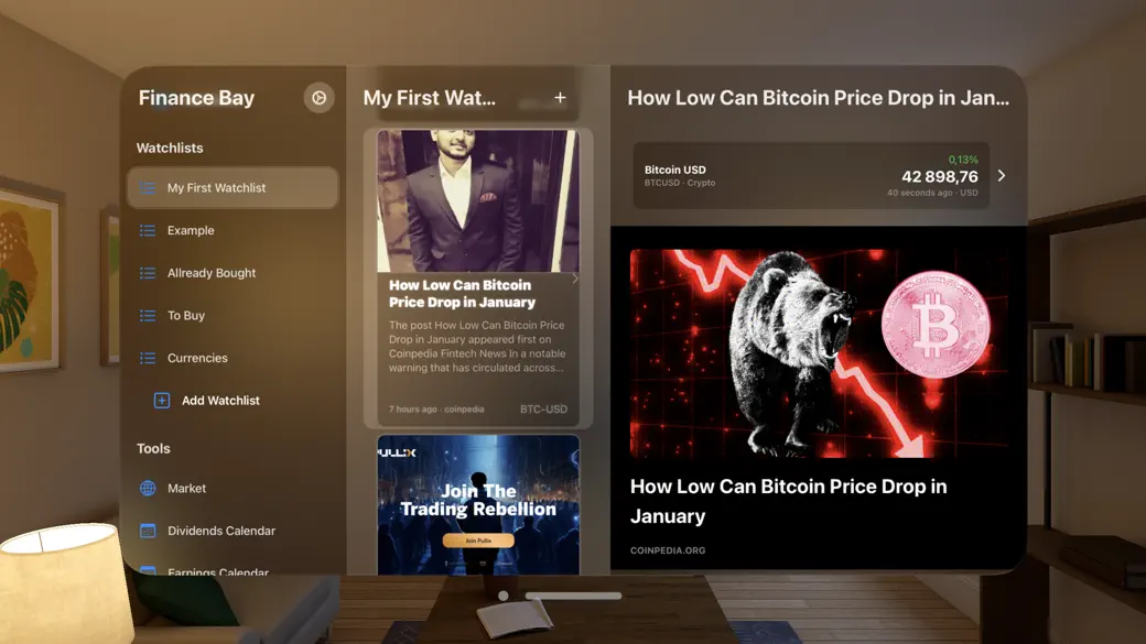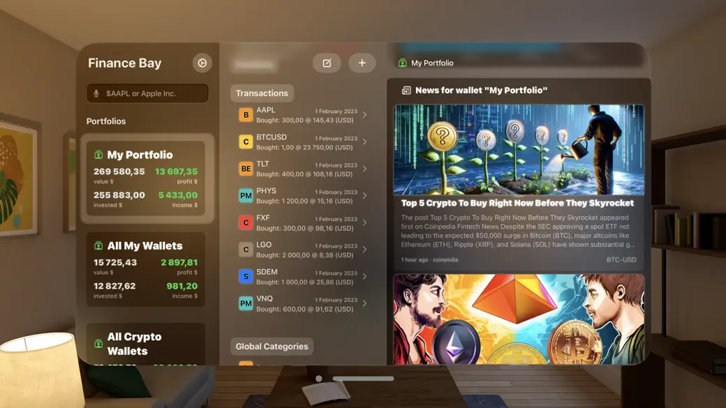Track, Analyze, and Benchmark Your Investments with a Powerful Portfolio Tracker: Finance Bay. Stay on top of your finances with a comprehensive Portfolio Tracker designed to consolidate and streamline your investment management. Whether your assets are spread across multiple brokerages or diversified into different asset classes, this Portfolio Tracker gives you a real-time, centralized view of your entire portfolio. COMPREHENSIVE HISTORICAL ACCOUNT STATISTICS The Portfolio Tracker lets you organize your investments by creating individual accounts for each brokerage or strategy. Dive into detailed historical data such as share prices, dividend payments, and ex-dividend dates. Visualize your overall asset allocation—across stocks, ETFs, and other assets—and customize transaction categories to uncover deeper insights into your portfolio performance over time. UNLIMITED ACCOUNT GROUPS Use the Portfolio Tracker to group multiple accounts into personalized clusters that reflect your investment themes. Whether you're managing a mix of growth stocks, income-focused funds, or international equities, you can view consolidated returns, metrics, and trends—all in one place. Say goodbye to spreadsheets and get a smarter way to manage your investments with always up-to-date performance data. IN-DEPTH STOCK MARKET DATA Enhance your investment research within the Portfolio Tracker by creating watchlists for your favorite stocks, ETFs, and mutual funds. Analyze historical charts, track returns, and stay informed with over 70,000 assets covered—including the full U.S. market, XETRA, EURONEXT, TSX, SEHK, and more. Never miss a corporate action or important event again. MULTI-DEVICE SYNC Keep your Portfolio Tracker updated across all your Apple devices with seamless iCloud synchronization. Access your investments anytime, anywhere, and stay connected to the markets in real time. PRIVACY AND SECURITY Your data stays private—always. The Portfolio Tracker is built with security in mind, ensuring that your personal investment information is never shared or sold. Track and analyze your portfolio with confidence and peace of mind. Take control of your financial future with the all-in-one Portfolio Tracker that puts clarity, insight, and strategy at your fingertips. Download now to start investing smarter. Privacy Policy: https://www.financebay.app/privacy-policy Terms of Service: https://www.apple.com/legal/internet-services/itunes/dev/stdeula/