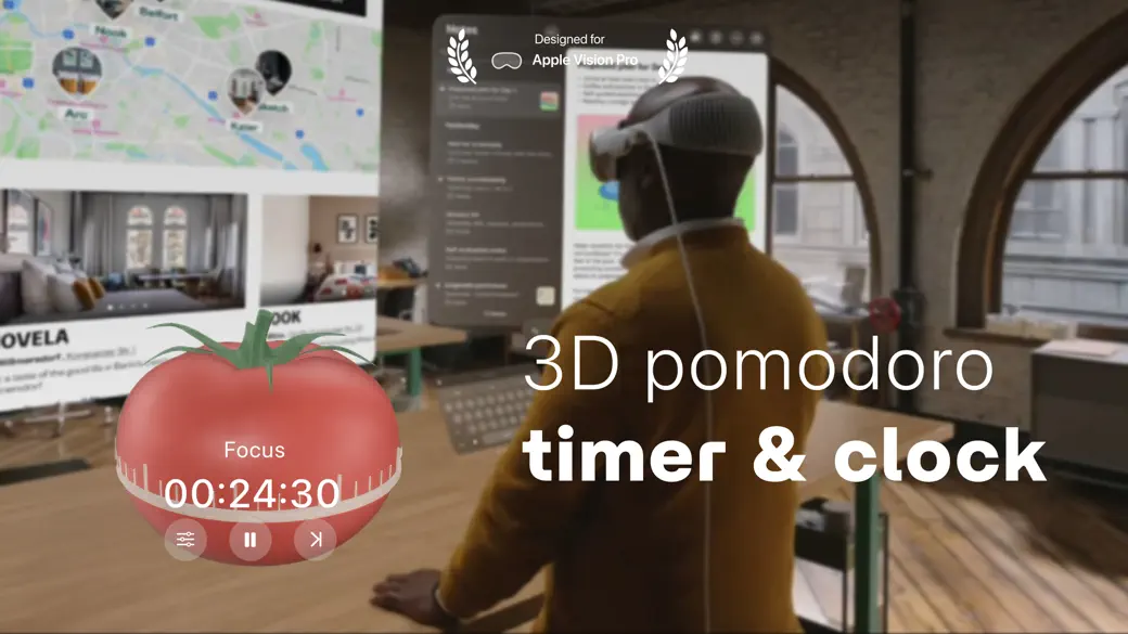 这个可爱的AR时钟和计时器是你在visionOS中学习和工作的最佳伙伴。 介绍“番茄计时器”,这是专为空间计算设计的AR/XR生产力工具。这个应用带来了激发番茄工作法的最经典厨房计时器,以可爱的3D虚拟时钟小部件形式呈现。互动旋转的小部件动画和温和的环境声音将改变你的工作、学习和专注时光。 为什么选择番茄计时器? 沉浸式AR体验:见证增强现实的魔力,你可爱的番茄伙伴在桌面上活灵活现。用充满魅力和趣味的方式追踪你的时间,使生产力成为一段视觉愉快的旅程。 提升你的专注力:采用番茄工作法,将你的工作分成高效的时间段。专注25分钟,然后休息5分钟以恢复精力。这是一种科学支持的方法,有助于提升生产力并防止倦怠。 个性化的专注时段:根据你的独特工作流程自定义计时器。调整工作时间段、休息时间,并设定个性化目标,以找到最适合你的生产力节奏。 专注环境音:沉浸在设计用于提升专注力的温和环境声音中。 用户友好设计:轻触即可开始专注工作时段。简单的界面确保你花更少的时间设置,更多的时间专注工作。 提升你的生产力与AR “番茄计时器:番茄时钟”不仅仅是一个应用程序;它是你的AR生产力伙伴,专为学生、专业人士和任何想要提升日常专注力的人而设计。摆脱单调的计时方法,为你的工作或学习时光注入欢乐和创造力。 立即下载“番茄计时器:番茄时钟”,开启利用AR重新定义生产力的旅程吧!