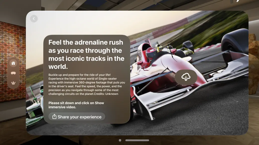 Immersive Video brings you unparalleled 360-degree experiences, fully optimized for Apple Vision Pro. Dive into the ocean’s depths, soar through the clouds, or unwind on a tranquil beach all in stunning immersive detail. With the power of Vision Pro, you’ll feel as if you’re truly there, exploring breathtaking environments and enjoying a new level of virtual presence. Whether you’re seeking adventure or relaxation, Immersive Video offers a captivating escape that surrounds you completely. Please read the [EULA] before purchasing/using. • About the End User License Agreement • This End User License Agreement (this "Agreement") applies to the user's use of this game software program (the "Program"). • THIS AGREEMENT SHALL COME INTO EFFECT BETWEEN BEFORZ AND USERS UPON INSTALLATION OF THE PROGRAM BY THE USER. Terms of Use: https://www.apple.com/legal/internet-services/itunes/dev/stdeula/ Please confirm the terms above and agree to this Agreement before purchasing the Program. Assistance : https://immersivevideo360.com/customer-services/ Privacy Policy : https://immersivevideo360.com/privacy-policy/