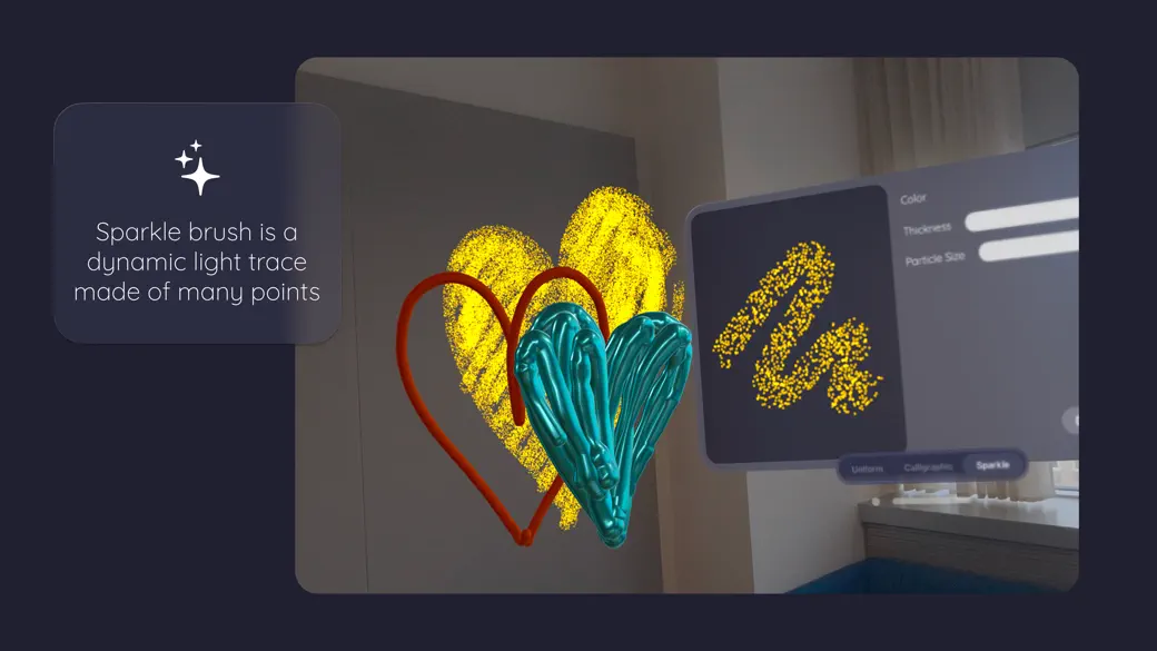 Step into the future of creativity with our revolutionary app, designed exclusively for Apple Vision Pro and optimized for visionOS. This cutting-edge application enables users to create breathtaking spatial artwork in a fully immersive, three-dimensional environment. Whether you’re an experienced digital artist or a novice explorer of augmented reality, our app gives you the tools to blend digital art seamlessly into your physical surroundings. Using advanced Metal shader technology for rendering, the app ensures that your creations come to life with smooth and hyper-realistic visuals. The journey begins by setting up your virtual canvas, perfectly sized to match your environment. Whether you want a small area to sketch ideas or a large canvas for more elaborate artwork, the power is in your hands. Once your space is ready, dive into an intuitive interface that offers complete creative freedom. Choose from a full spectrum of colors using the customizable palette and adjust parameters like thickness, texture, roughness, and metallic properties to bring depth and personality to your designs. Whether you’re aiming for sleek, polished surfaces or more intricate, textured artwork, the app adapts to your style and vision. Explore different brush modes, including uniform, calligraphic, and sparkle, to add unique touches to your work. With real-time rendering, you can see how your artwork interacts with the space around you, creating dynamic and immersive art installations that change the way you experience creativity. Our app transforms the process of drawing, painting, and sculpting into an interactive and immersive adventure where your surroundings become the canvas. Unleash your imagination and create artwork that isn’t confined to a screen but lives within the space you occupy. WARNING: CLAY IS A TECHNICAL DEMO. ALL DRAWINGS MADE WITHIN THE APPLICATION ARE TEMPORARY AND WILL BE LOST WHEN YOU CLOSE THE APPLICATION.